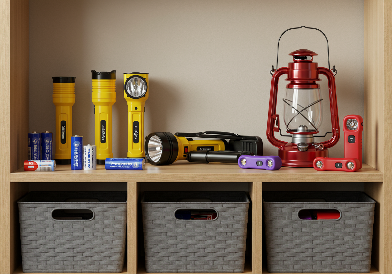 At the bare minimum, be sure you have flashlights, fresh batteries, candles, water, nonperishable food items, and battery-operated fans. Take advantage of portable power banks to keep phones charged in the instance of lost electricity.